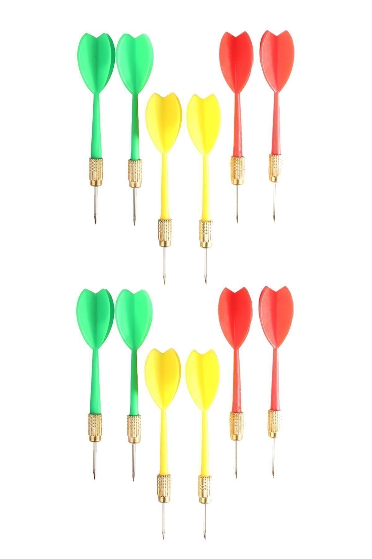 12 Adet Dart Oku Çelik Uç Pirinç Başlık Renkli Dart Oku Seti